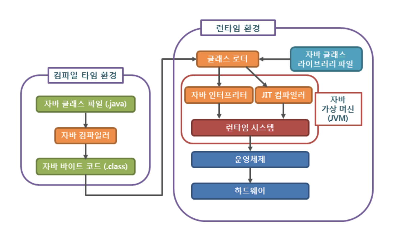 Java가 인기 있었던 이유 중 하나는 OS에 구애받지 않고 사용할 수 있었던 것이다. JVM을 사용하면 윈도우에서 작성했건 리눅스에서 했건 맥에서 했건 간에 모두 사용할 수 있다. JVM은 Java Virtual Machine으로 다양한 역할을 하지만 자바 바이트 코드를 운영체제가 이해할 수 있도록 바꿔주는 역할도 한다. Java가 운영체제마다 명령어 체계가 다르기 때문에 발생했던 문제점을 해결한 것이다. 물론 운영체제에 맞는 JVM을 설치해야한다는 점이 있긴 한데, 개발자들 입장에서는 같은 코드로 다양한 운영체제에서 사용할 수 있다는 것은 엄청난 메리트가 아닐 수 없었다. 그렇다면 Java가 컴파일 되는 과정을 좀 더 자세히 알아보도록하겠다.