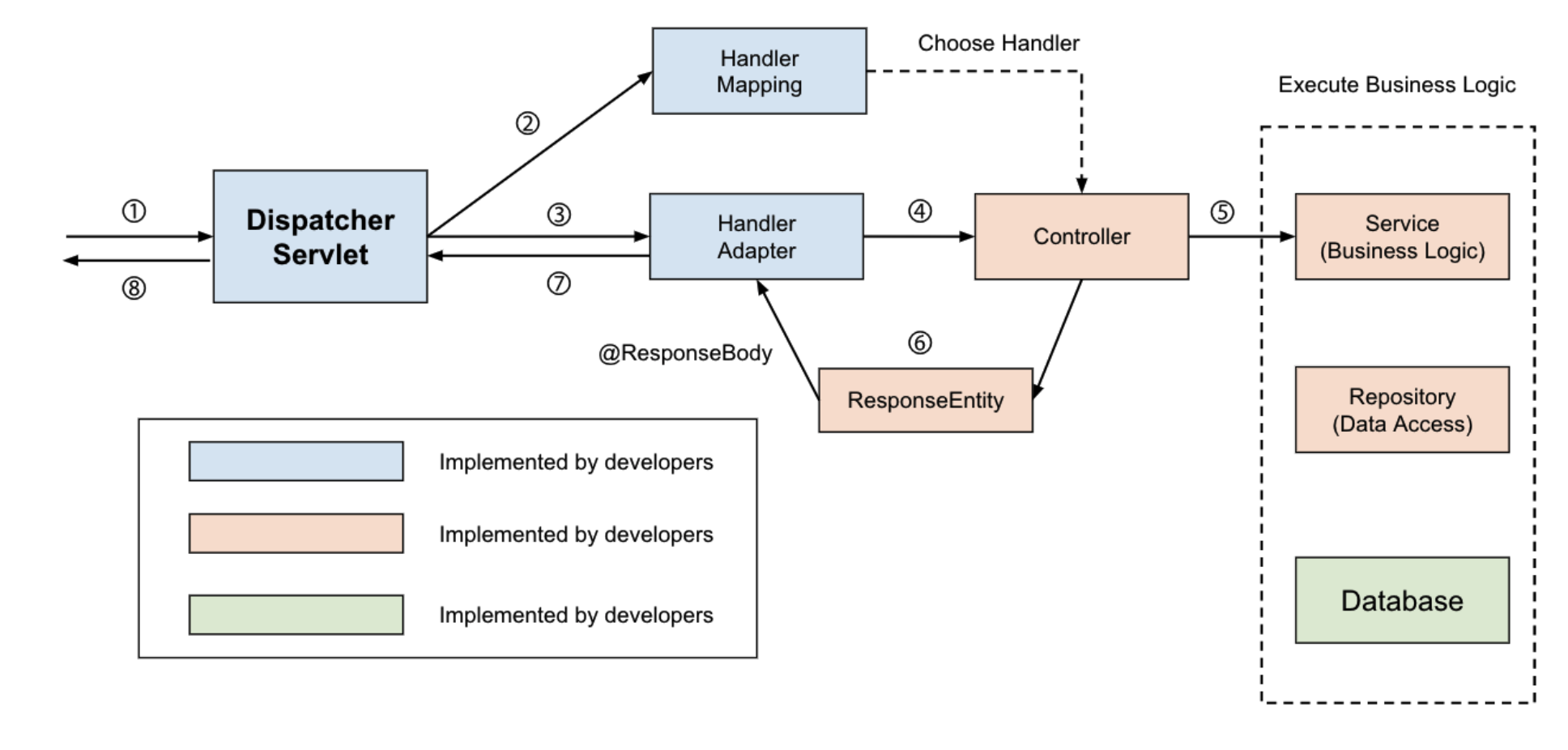 2. 서블릿이 요청을 받아서 Handler Mapping에 전달한다.