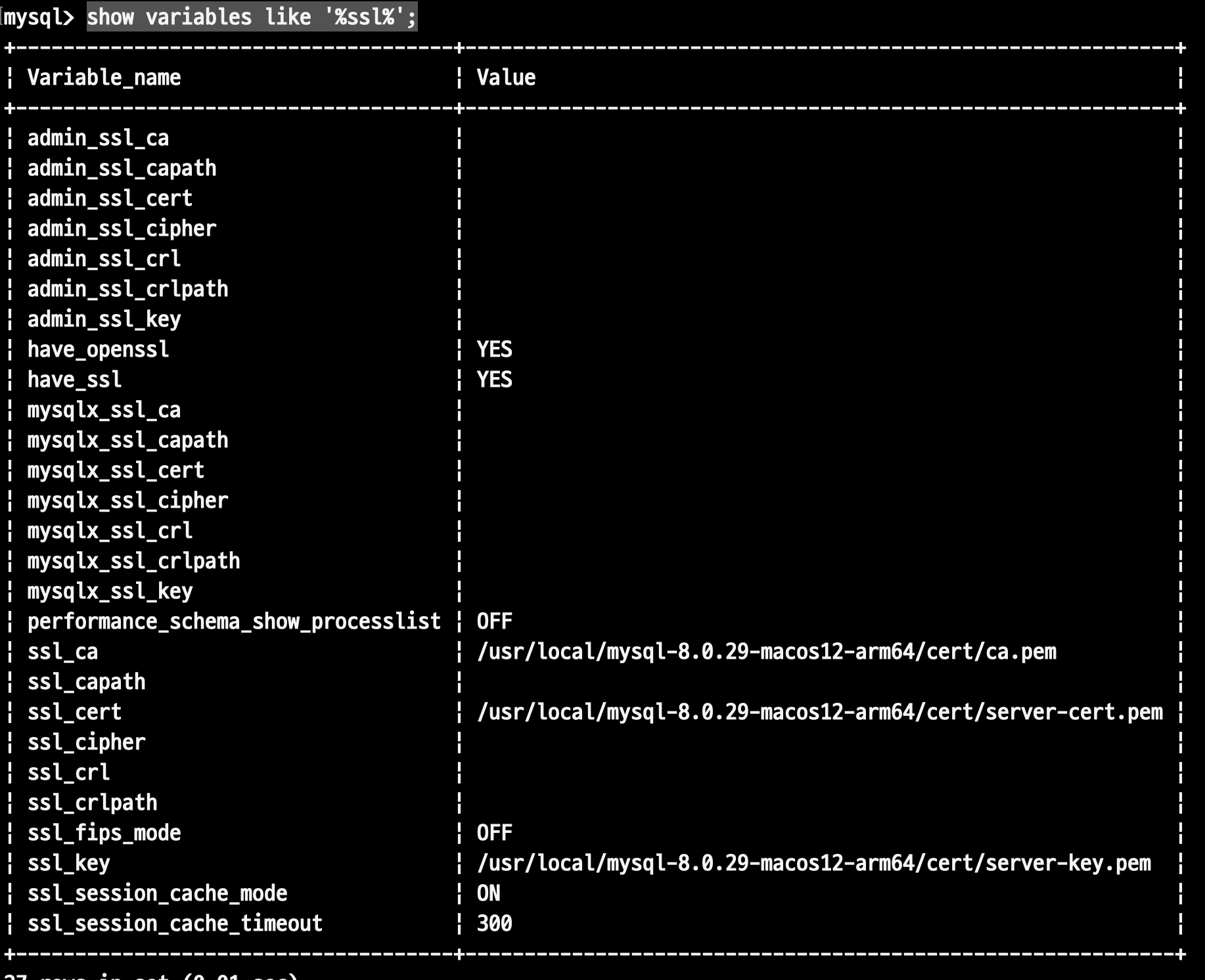 ssl-cert=/usr/local/mysql-8.0.29-macos12-arm64/cert/server-cert.pem