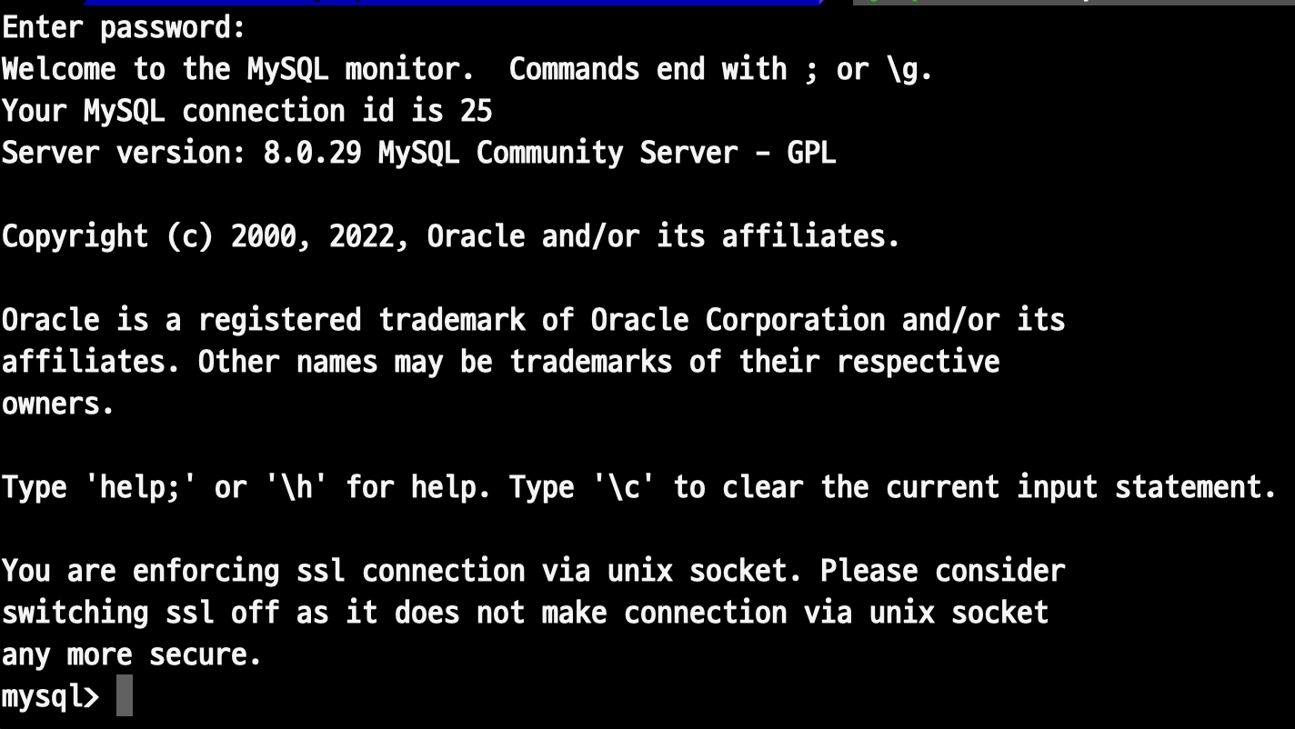 mysql -u ssl -p --ssl-mode=REQUIRED --ssl-key=client-key.pem --ssl-cert=client-cert.pem
