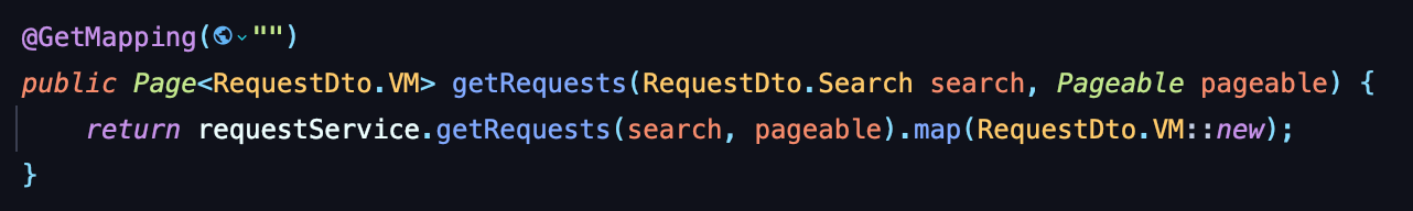 컨트롤러에 속한 메소드의 예시이다. 위의 예시처럼 메소드에 파라미터로 DTO를 넣든, HttpServletRequest를 넣든, Pageable을 넣든 스프링이 알아서 주입해줘서 우리는 편리하게 사용할 수 있다. 이렇게 값을 주입해주는 역할을 하는 것이 바로 ArgumentResolver이다.